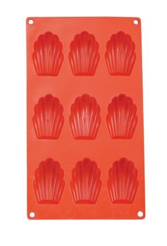 Looking nothing like traditional bakeware but borrowing many of its best characteristics, Lekue's Madeleine pan cooks evenly, releases food easily, and is made of FDA-approved food grade silicone. The pliable silicone construction carries many advantages such as immediate cool-down, the prevention of burnt edges and crusts, and a foldability that extends storage options. With a slightly shorter cooking time, the pan bakes nine 2-by-2-3/4-inch tasty treats--complete with the traditional Madeleine shape and ridged texture. Nonstick surfaces help food to release easily but greasing is still a good idea--especially if regularly being washed in the dishwasher. Freezer-, microwave-, and oven-safe up to 500 degrees F, the pan seamlessly transitions from cold to hot. Contact with direct heat sources such as burners or hotplates should be avoided and sharp metal tools can damage or cut the material. The pan measures 7 by 3/4 by 12 inches and benefits from a quick rinse before use as small crumbs and particles easily adhere to its rubbery surface. -- Amy Arnold